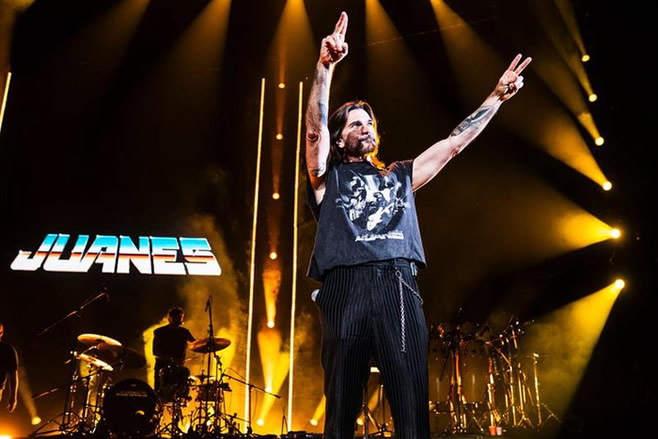 Juanes regresó a Buenos Aires en la noche del martes sin otro motivo más que el de afianzar su idilio con el público argentino. Lo que no es poca cosa. “Es un milagro estar aquí, y más si es junto a ustedes. Desde que vine la primera vez, en el año 2000, me enamoré de este país. Miento: estaba enamorado antes de conocerlo”, reconoció el astro musical colombiano, promediando la mitad de esta vuelta a la ciudad, donde se presentó por primera vez en el Movistar Arena. “Mis papás, mi familia y yo crecimos escuchando música de aquí. Desde Los Chalchaleros hasta Gardel, pasando por Soda Stereo. Les había hablado tanto de Buenos Aires a mi esposa y a mi hija Paloma (presentes entre la audiencia) que en esta oportunidad vinieron conmigo. Y eso me hace sentir más feliz todavía”.
