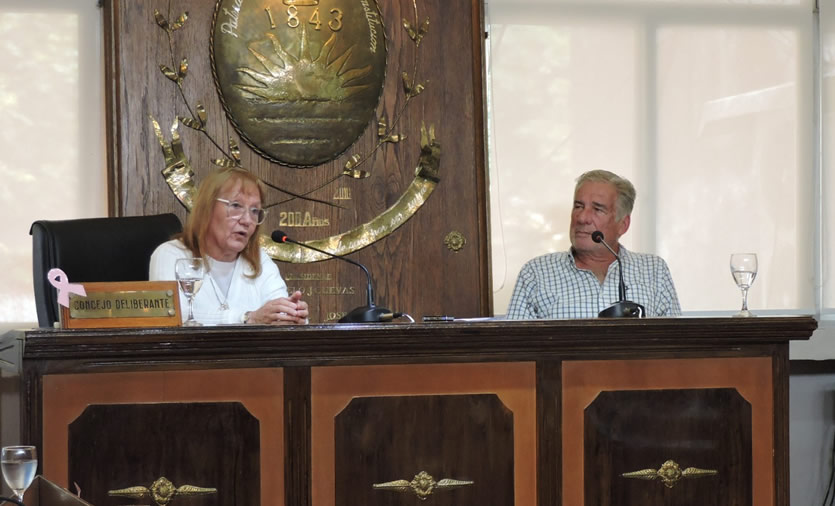 Estenaga, junto al hijo de “Bilicha”, Osvaldo Durruty ocuparon el estrado presidencial para dirigirse a los ediles. En la sala de sesiones Pte. Arturo Frondizi, entre el público, también estuvieron su nuera y nieto.