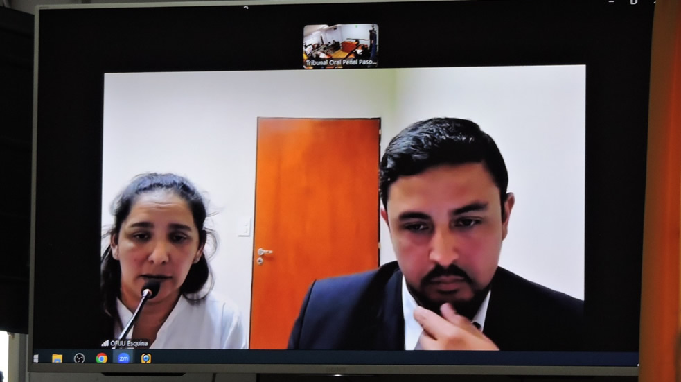 Foto: Dr. Mariano Torres, junto a su asistida, Mónica Almeida, siguiendo de manera virtual, el juicio oral desde la ciudad de EsquinaViernes, 7 de noviembre de 2025