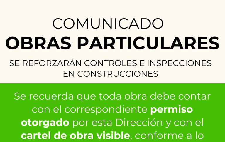 En este sentido, se solicita a los vecinos que, antes de iniciar cualquier tipo de construcción, se acerquen a la Oficina de Obras Particulares, ubicada en el Palacio Municipal, a fin de tramitar el permiso correspondiente y evitar sanciones o multas.