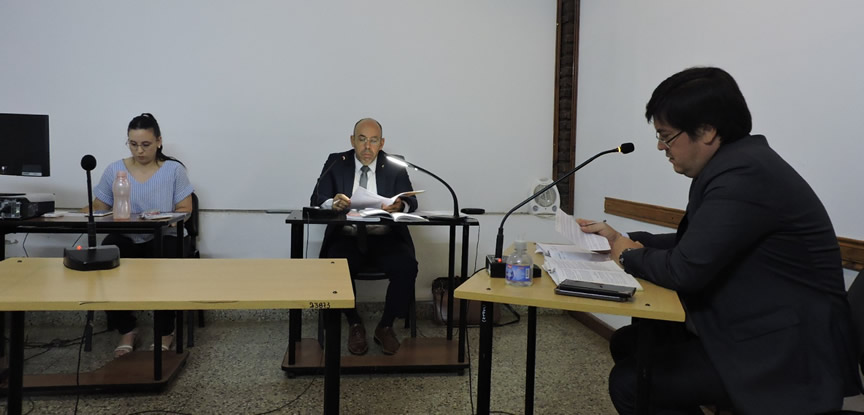 La audiencia fue conducida por el Juez de Garantías, Daniel Insaurralde; estuvieron presentes en la sala, el Fiscal de Investigaciones Concretas, Facundo Sotelo y la Defensora Oficial, María Soledad Fresneda. De manera remota, ya que se encuentra convaleciente, recuperándose de las heridas que se autoinfligió, lo hizo el acusado desde el Hospital San José.