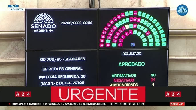 El oficialismo se alzó con el logro de la media sanción de la ley de glaciares, con 40 votos a favor, 31 votos en contra y 1 abstención, que desde los palcos aplaudieron la secretaria General de la Presidencia, Karina Milei y su habitual compañero de palco -en el Senado- el presidente de la Cámara de Diputados, Martín Menem.