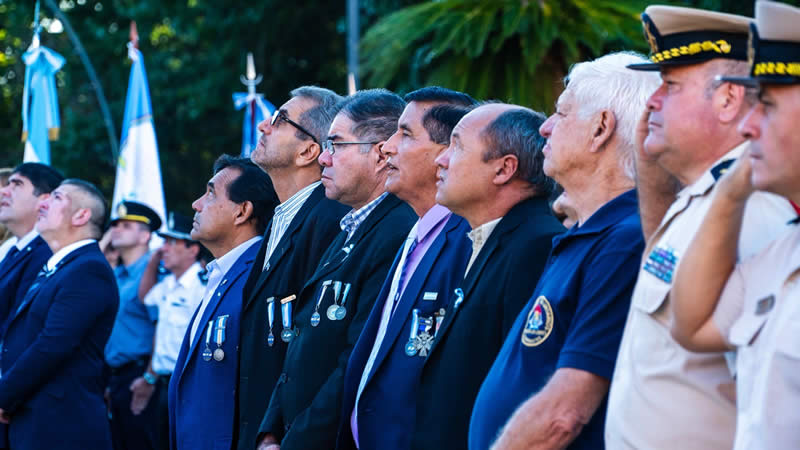 Del acto participaron el intendente municipal, Agustín Guillermo Faraldo; el teniente coronel José María Carranza, jefe de la Guarnición Militar Paso de los Libres; y el presidente del Concejo Deliberante, Oscar Vischi. También estuvieron presentes concejales, miembros del gabinete municipal y abanderados y escoltas de distintos establecimientos educativos.