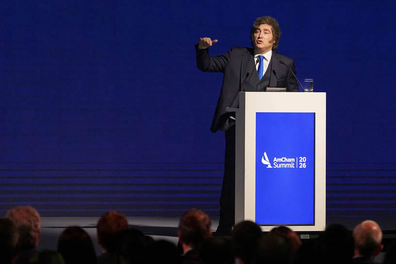 El presidente cerró el evento de la Cámara de Comercio de Estados Unidos en la Argentina y prometió más motosierra y ajuste en todas las áreas del gobierno. Chicanas al círculo rojo, el periodismo y los "econochantas".