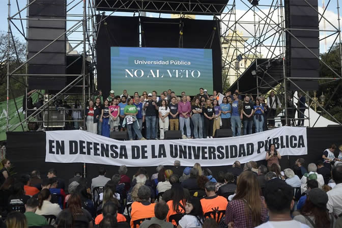 La Marcha Universitaria, convocada por el Consejo Interuniversitario Nacional (CIN) y la Federación Universitaria Argentina (FUA), exige el cumplimiento de la Ley de Financiamiento Universitario, cuya aplicación se encuentra congelada por el Gobierno de Javier Milei.